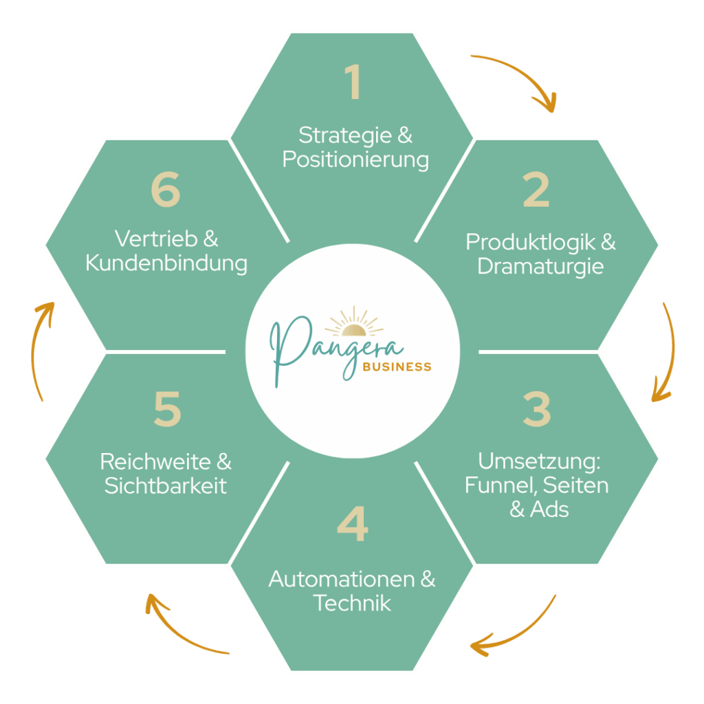 Bei Pangera Business greifen alle Teile nahtlos ineinander. Statt losen Puzzleteilen bekommst du bei uns ein vollständiges System, das Strategie, Umsetzung und Reichweite verbindet. Jedes Teil ergänzt das andere – so entsteht ein funktionierendes, sichtbares und wachsendes Business.