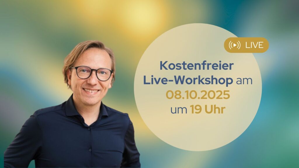 Der kostenfreie Live-Workshop findet am 08.10.2025 um 19 Uhr über Zoom statt. Den Link erhältst du nach deiner kostenfreien Anmeldung über den Button.